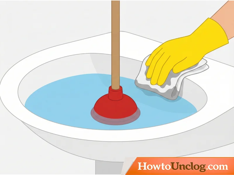 If your sink has an overflow hole (that small opening on the side of the basin), block it with a wet cloth or towel. This prevents air from escaping and ensures all pressure goes toward dislodging the clog.