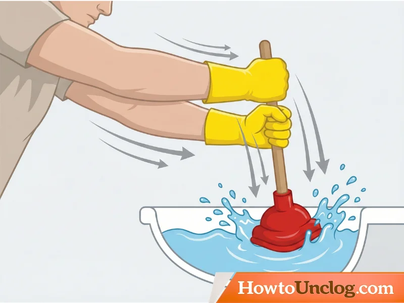 Push down and pull up rapidly in one smooth motion, maintaining the seal with the sink. Perform 15-20 vigorous plunges without breaking the seal. You should hear a suction sound and feel the plunger creating pressure. Use your full arm strength—this needs to be forceful.