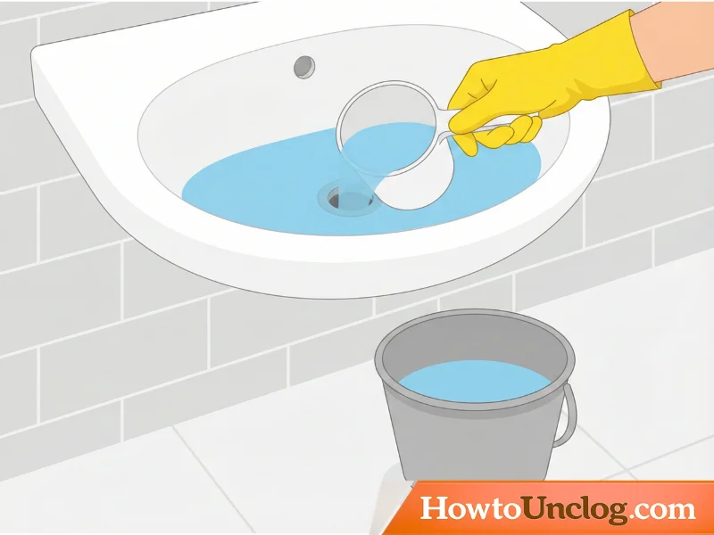 Remove the drain stopper first. Then, if there’s significant standing water, scoop some out into a bucket. You don’t need the sink completely dry, but reducing the water level makes it easier to see what you’re doing and prevents water from splashing when you insert the snake.