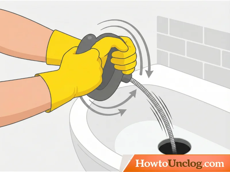 Once you’ve fed enough cable down and feel resistance, rotate the handle clockwise (crank it). This rotation does two things: it can hook into debris and hair to pull it out, or it can break apart stubborn blockages. Crank steadily for 10-15 seconds, then pull back slightly and crank again.