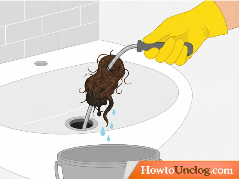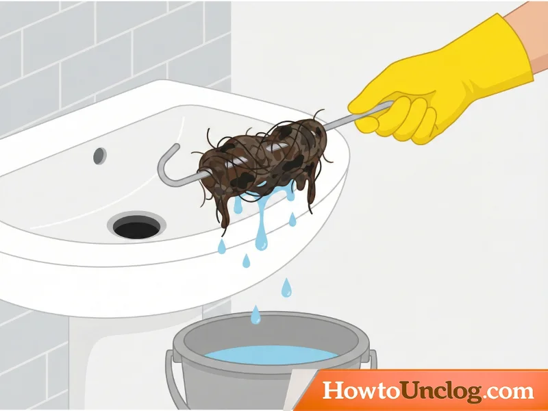 Pull the snake straight back up and out of the drain. You’ll often see hair and debris wrapped around the cable—this is what was blocking your drain. Have a bucket nearby to catch dripping water and dispose of the debris.