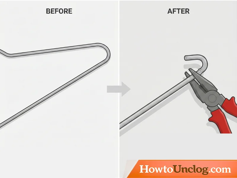 Take a wire coat hanger and use needle-nose pliers to bend one end into a small hook shape. The hook should be roughly 1-2 inches long and curved enough to catch hair but not so sharp that it damages the drain. Bend it slowly and carefully to avoid snapping the wire.