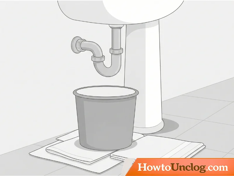 Place a bucket under the curved P-trap section of the drain pipe. This is the U-shaped section under the sink. Water and debris will spill out when you loosen the connection, so be prepared. Lay towels around the bucket to catch spills.