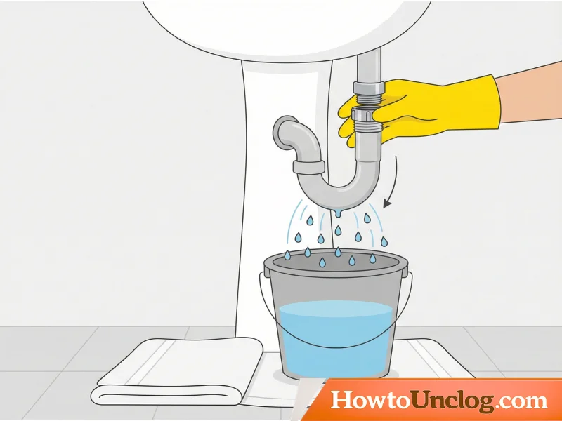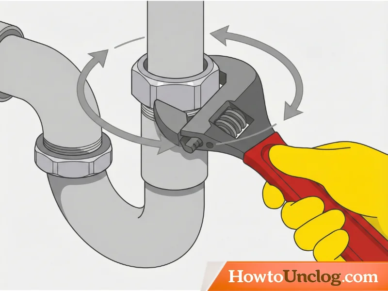 The P-trap connects to the drain line with a large hex nut called a slip nut. This is usually located on the upper connection point of the trap. Using an adjustable wrench, turn the slip nut counterclockwise to loosen it. Go slowly—you’ll feel it release as the seal breaks. Water may start dripping immediately.