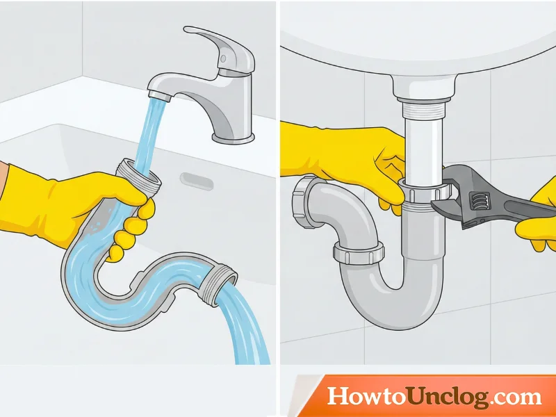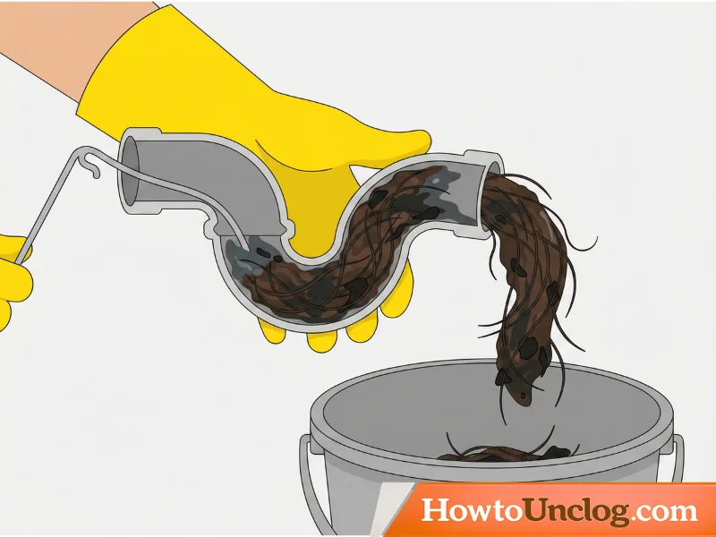 Hold the P-trap section over the bucket and look inside with a flashlight. You’ll often see exactly where the blockage is—a dark clump of hair, soap, and debris. Use a wire, straightened coat hanger, or stick to push or pull the blockage out into the bucket. This direct access is why this method is so effective for stubborn clogs.